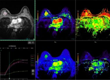 原理介绍:通过uCS压缩感知技术对乳腺实现多期相快速扫描,以血流动力学为基础,将MR成像中T1信号强度与造影剂浓度相联系,通过定量分析,评估局部血管通透性的改变及相关生理学信息